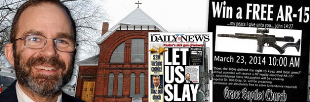 Well, not all churches, just one in particular. Pastor John Koletas of the Grace Baptist Church in Troy, N.Y., has decided it would be a good idea to raffle off a gun in the house of the Lord. On March 23, 2014, the good pastor will give one lucky member of his flock a shiny new, legally modified AR-15 assault rifle.